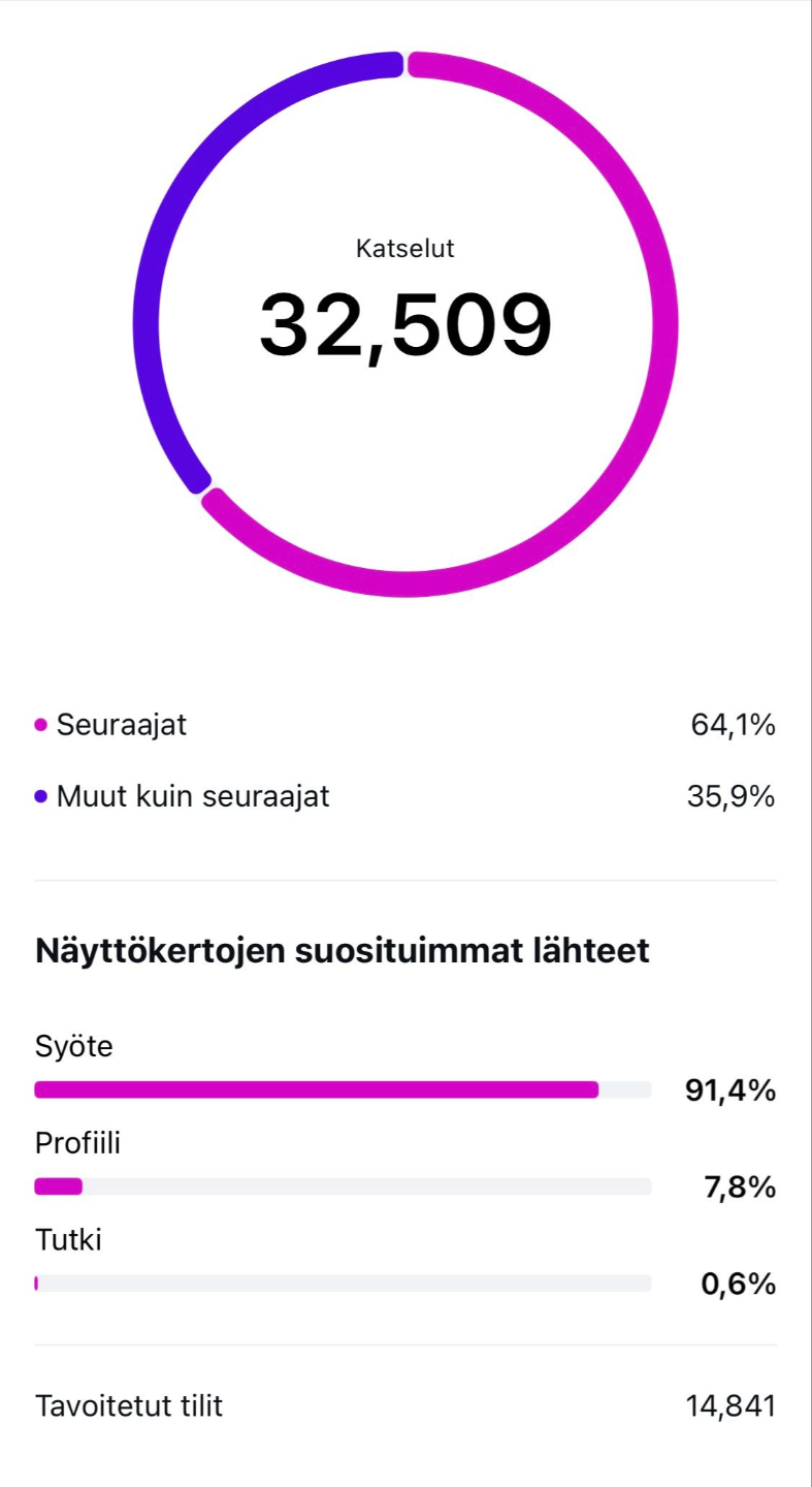 että saat niille aina niin paljon näkyvyyttä kuin sinun Instagram-tilillä, aiheella ja kohderyhmällä vaan on mahdollista saada.